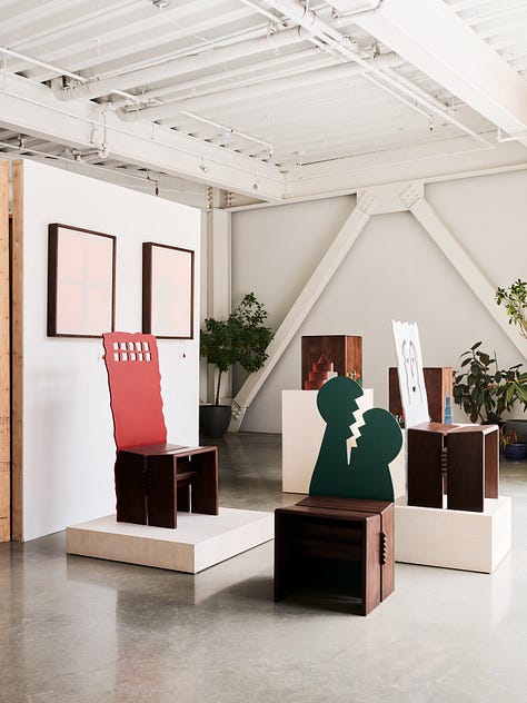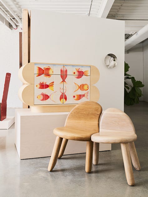 Looking at the Dogtrot Stools in person without companion text, you’d be forgiven for not grasping every storyline they contain. You would likely still find their structure striking, their function highly efficient. This is a marker of a successful furniture object: It can stand alone, form forward and context aside. It contains and conveys meaning without raising its voice. If the stool couldn’t stand alone, or in the concert of a home, then it would be at risk for crossing back into the art world. I am interested in work which toes the line, or connects the dots as PIN-UP's latest issue puts it. But I can also attest that the gatekeepers to the design world are very much reliant on the one traditional thing which separates design from art: FUNCTION. It’s a boring word and doesn’t do justice to the poeticism instilled in objects meant for daily use. A home is meant to be lived in, its furniture is meant to be used. I want to sit in my chair, not just look at it.